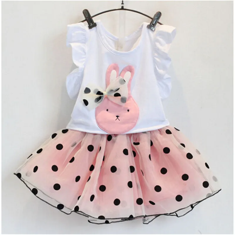 Retail 2018 New Summer Kids Girls Clothing Set Elsa T-shirt + Dress Cotton Baby Girls Suits Set Car