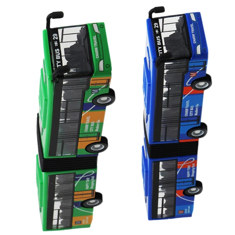 ORIGINAL 2 Pcs Children's Diecast Model Vehicle Shuttle Bus Car Toys Small Baby Pull Back Toys Blue & Green