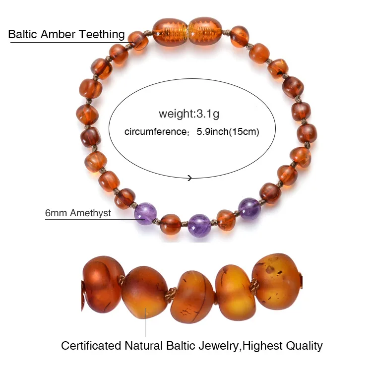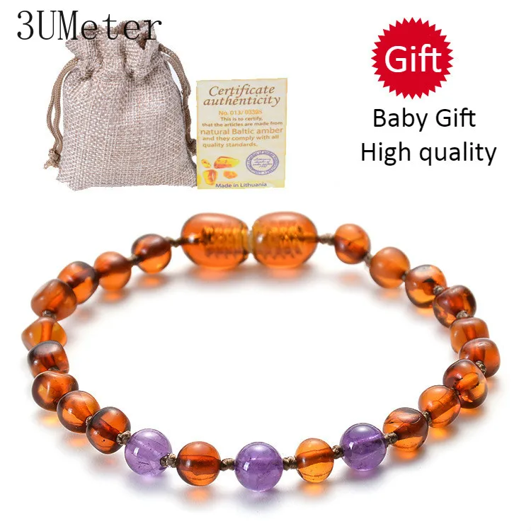 3UMeter Fashion Natural Amber Baby Bracelet Children Baby Teeth Amethyst Amber Bracelet Gift Drop S