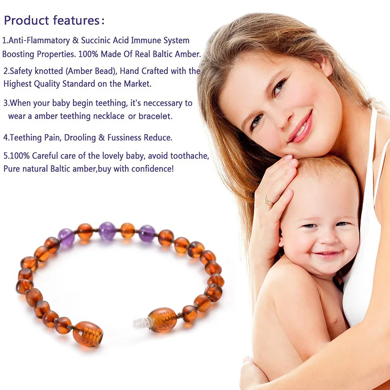 HIGH QUALITY 3UMeter Fashion Natural Amber Baby Bracelet Children Baby Teeth Amethyst Amber Bracelet Gift Drop S