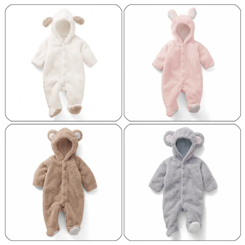 TOP Winter child pantyhose bear style children's coral fleece Hoodies overalls newborn baby sliders new